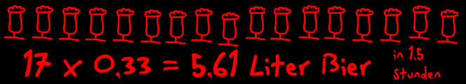Worten siebzehn) Flaschen Karlsberg Ur-Pils in 1.5 (in Worten anderthalb) Stunden zu trinken.